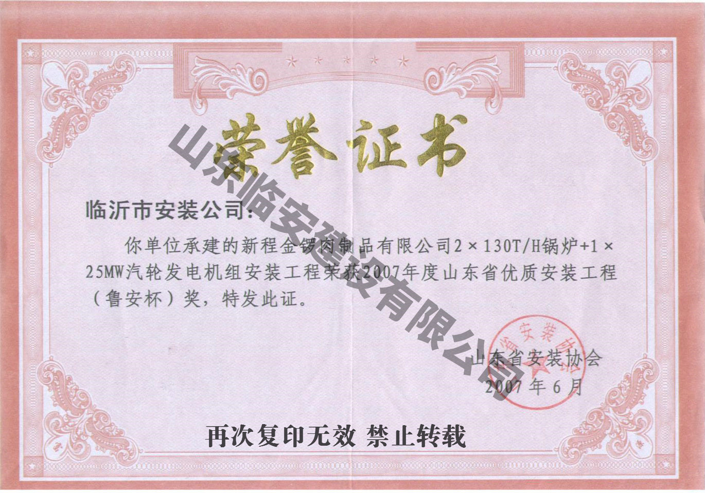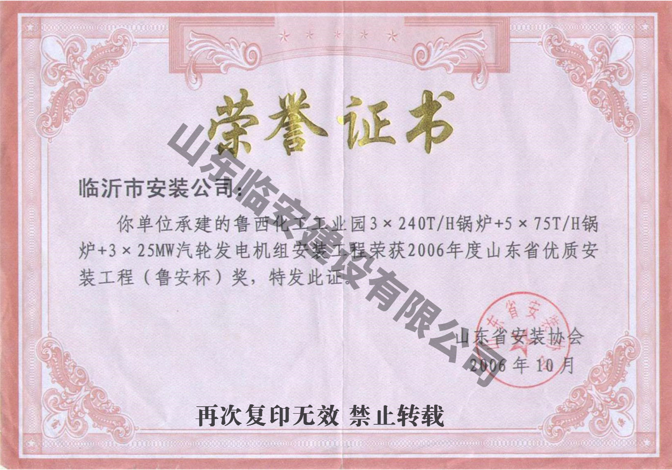 山東臨安建設(shè)有限公司(原名臨沂市安裝公司)始建于一九六六年,是由老國企改制的股份制企業(yè),公司總部位于羅莊區(qū)通達路211號,現(xiàn)有職工1000余名,各類工程經(jīng)濟技術(shù)人員816名,其中高中級職稱64名,初級職稱204人。主要從事機電工程施工總承包,電力施工總承包,石油化工施工總承包,建筑裝飾裝修施工總承包,鍋爐安裝、改造I級(參數(shù)不限),GB1、GB2(2)級、GC1級、GD1級壓力管道安裝,起重機械B級安裝,電力設(shè)施承裝、承試,并取得了GB/T19001-2008質(zhì)量管理體系認證證書、GB/T28001-2011職業(yè)健康安全管理體系認證證書、GB/T24001-2004環(huán)境管理體系認證證書,資信等級“AAA”級。